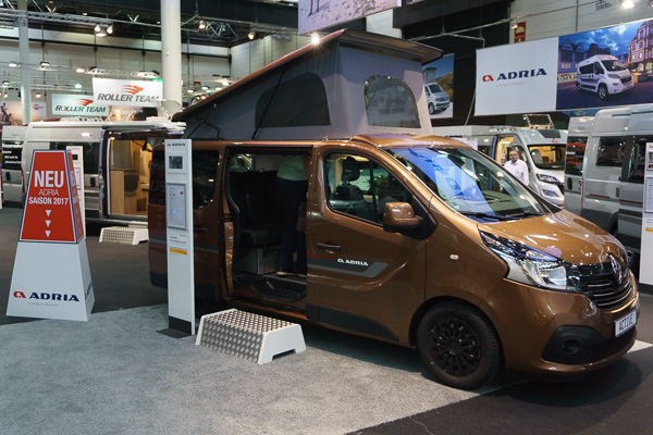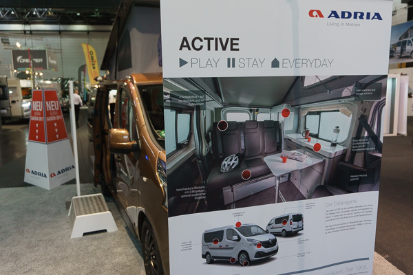 Der Active 2017 von Adria hat als Basis einen Renault Traffic. Wir empfanden den Innenraum überraschend groß, sicherlich auch durch das Aufstelldach. Der Campingbus verfügt über eine Küche mit einem Gaskocher, Spüle und einem Kompressor-Kühlschrank. Durch das Aufstelldach finden bis zu 4 Personen einen Schlafplatz. Zwei im Aufstelldach und zwei auf der verschiebbaren Rückbank. Als Alternative sicherlich nicht schlecht, aber der Active 2017 ist eher für zwei Personen. Preislich liegt der Active 2017 so ca. ab EUR 45.000.-